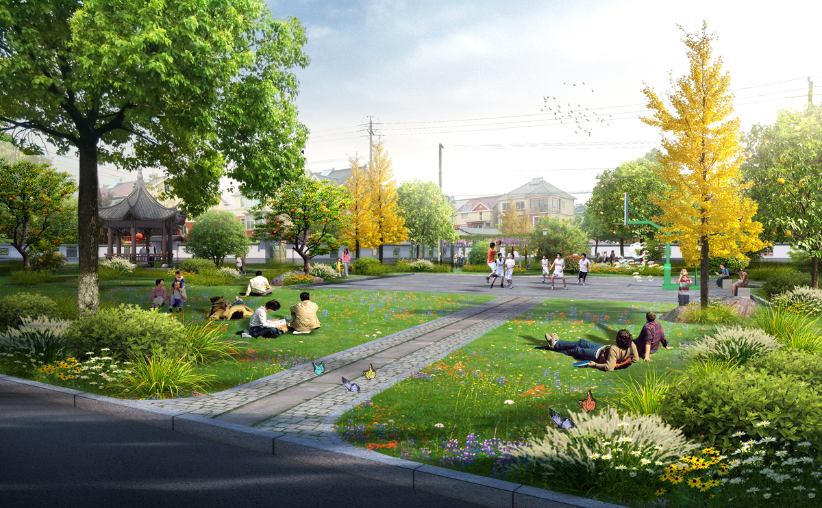 1、新建:停車場、小游園、公廁、亭子、道路、圍墻、綠化、照明、籃球場、管理房、村口標識、配套健身器械等。