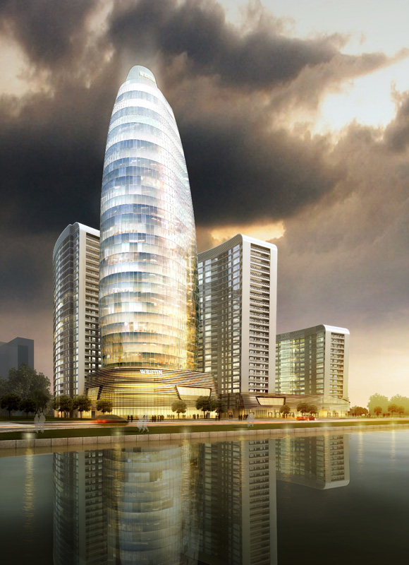 該工程位于杭州市下沙經(jīng)濟(jì)開發(fā)區(qū)(金沙湖板塊),總建筑面積152627平方米,其中地上28層,地下2層,建筑高度100米內(nèi)。工程概算為52615.29萬元。其中A幢、B幢、C幢為酒店。