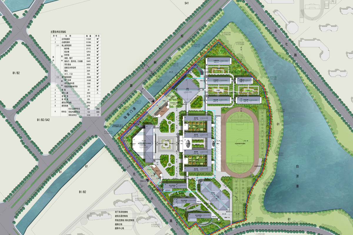 該項目位于良渚街道勾莊村棕櫚路以南,總建筑面積約151192.39㎡,其中地上建筑面積為106078.24㎡,地下建筑面積約為45114.15㎡,主要建設(shè)內(nèi)容包括教學(xué)樓、科技綜合樓、多功能報告廳、圖書館、體育樓、宿舍樓、食堂、操場、道路廣場、地下車庫及其他相關(guān)配套附屬設(shè)施等。